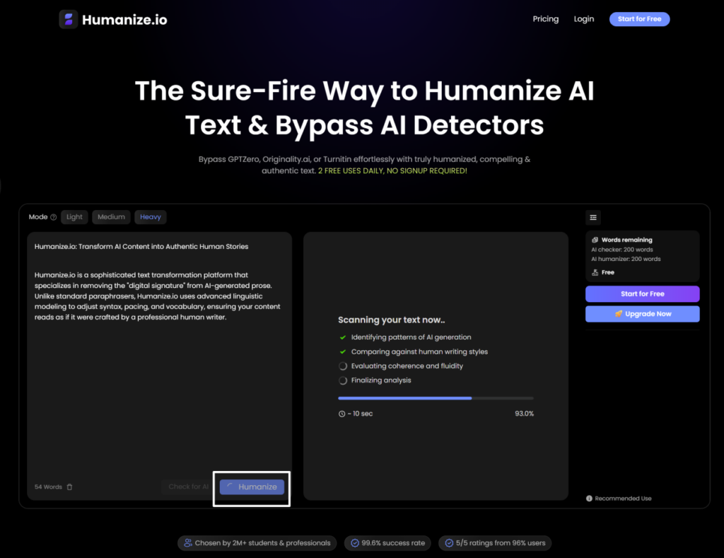 Step 3: Review the output. You’ll notice the “robotic” patterns are gone, replaced by a more natural, engaging tone that preserves your original intent.